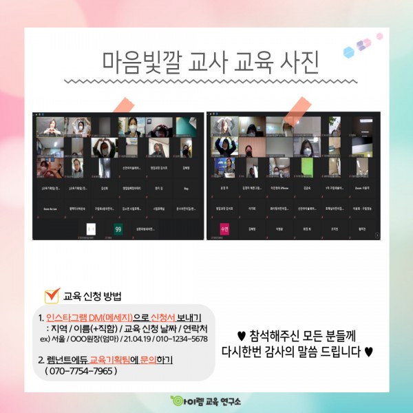 찾을 수 있도록 도와주는 마음빛깔 교사 줌 교육을 진행하였습니다.