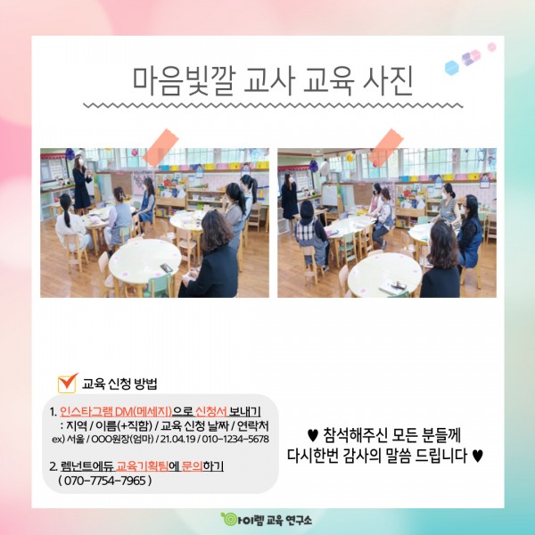 사랑의 힘을 찾을 수 있도록 도와주는 마음빛깔 교사 교육을 진행하였습니다.