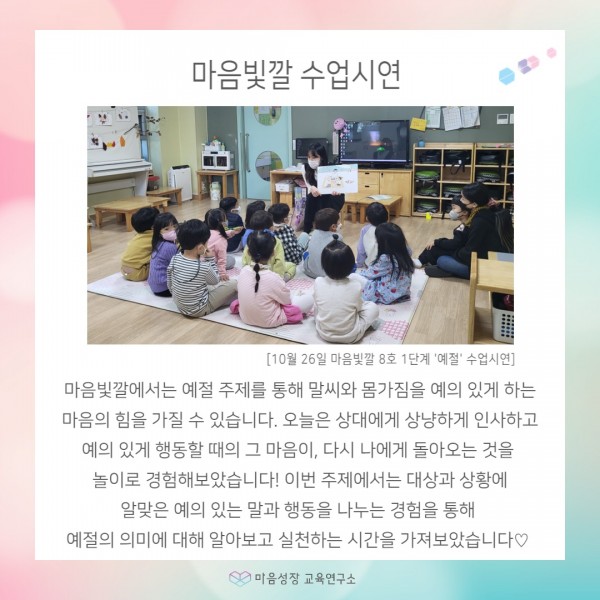 광명 시립소하누리어린이집 1단계 '예절' 4주 수업시연 (22.10.26)