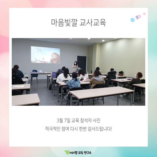 아이들의 마음을 여는 마음 성장 교육, 마음 빛깔 신학기 교사 교육을 진행하였습니다.