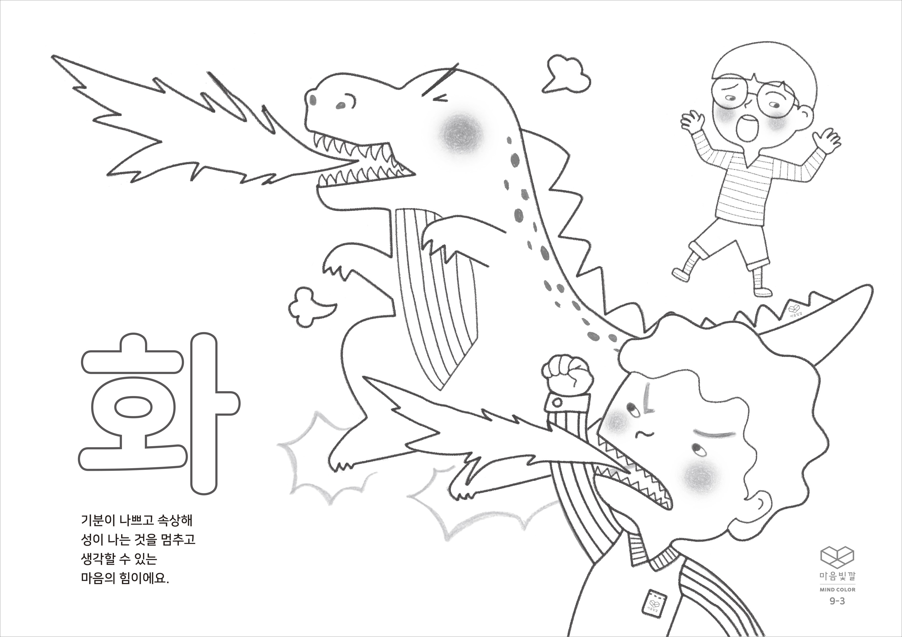 화에 대해 함께 이야기 나누고, 화를 멈출 수 있는 마음의 힘을 생각하며 색칠해 보세요.