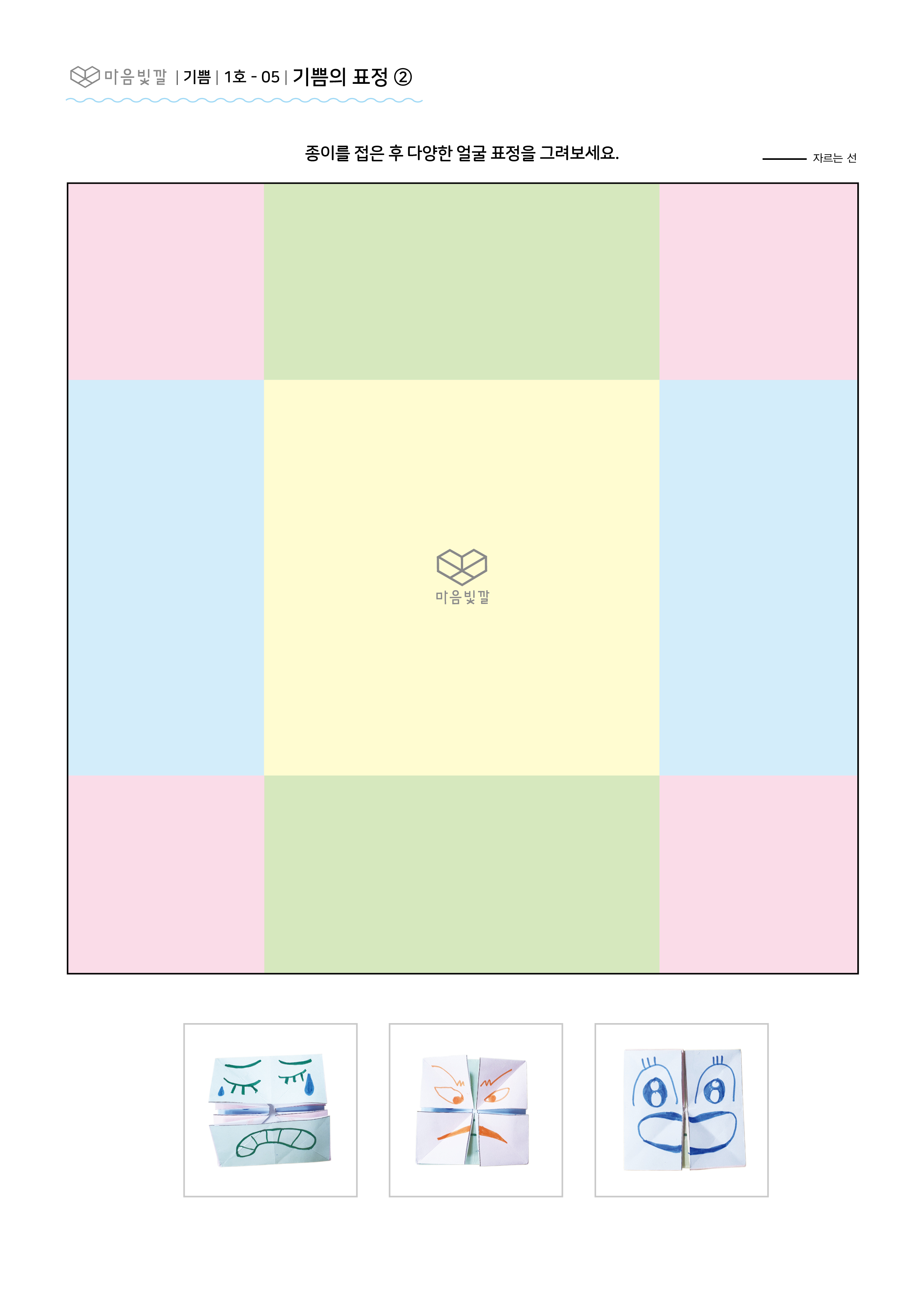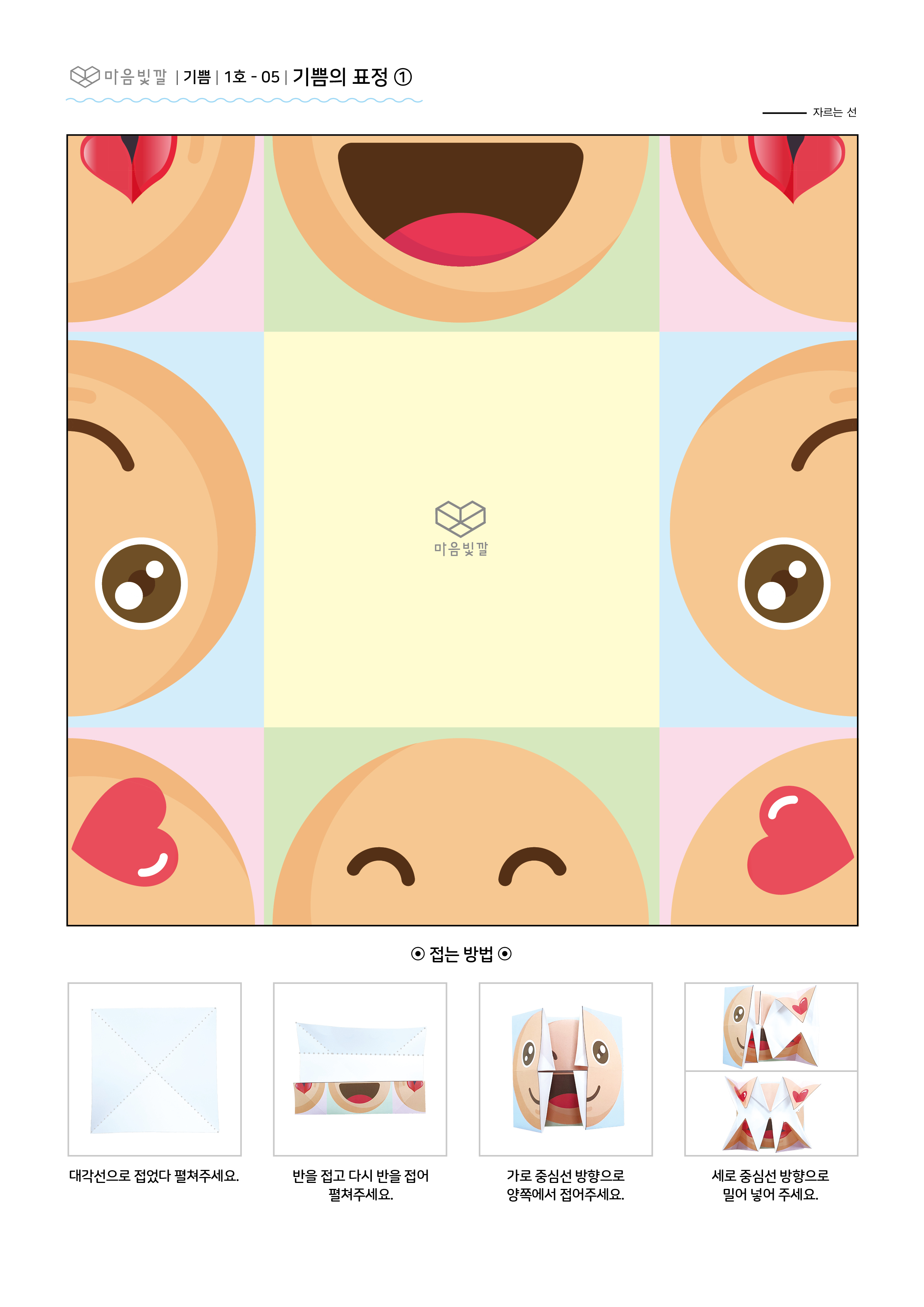 - 종이를 접고 펼치는 활동으로 여러 가지 기쁨의 얼굴 표정을 관찰할 수 있습니다.