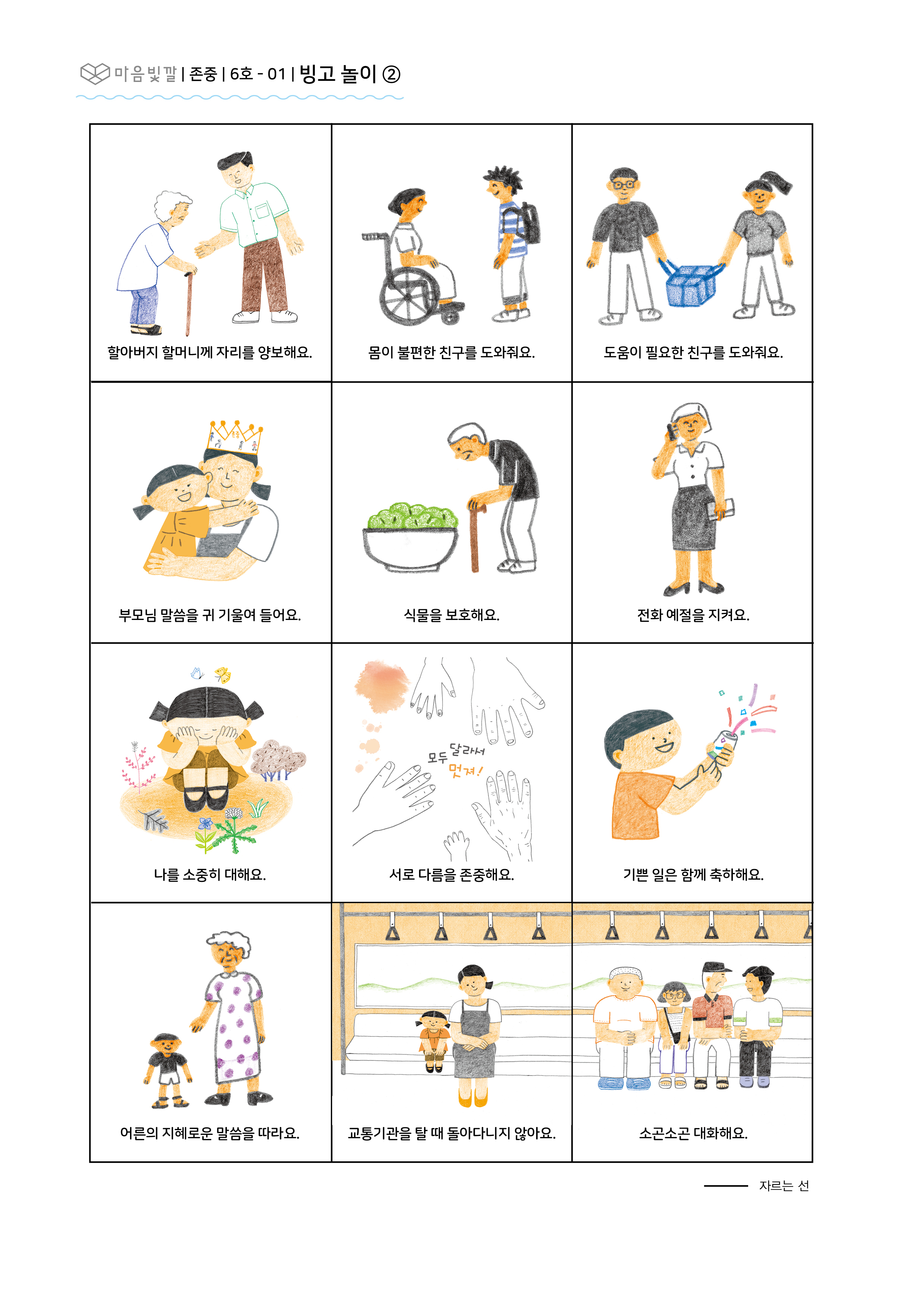 - 존중 카드 그림으로 존중 빙고 놀이를 해요.