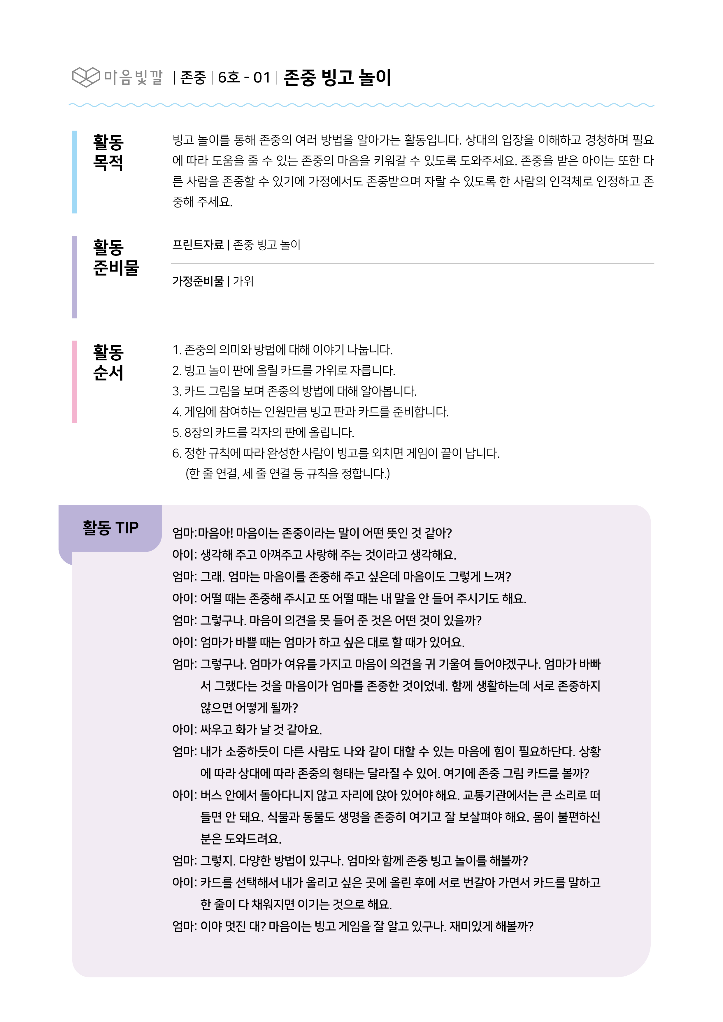 < 존중 빙고 놀이 >