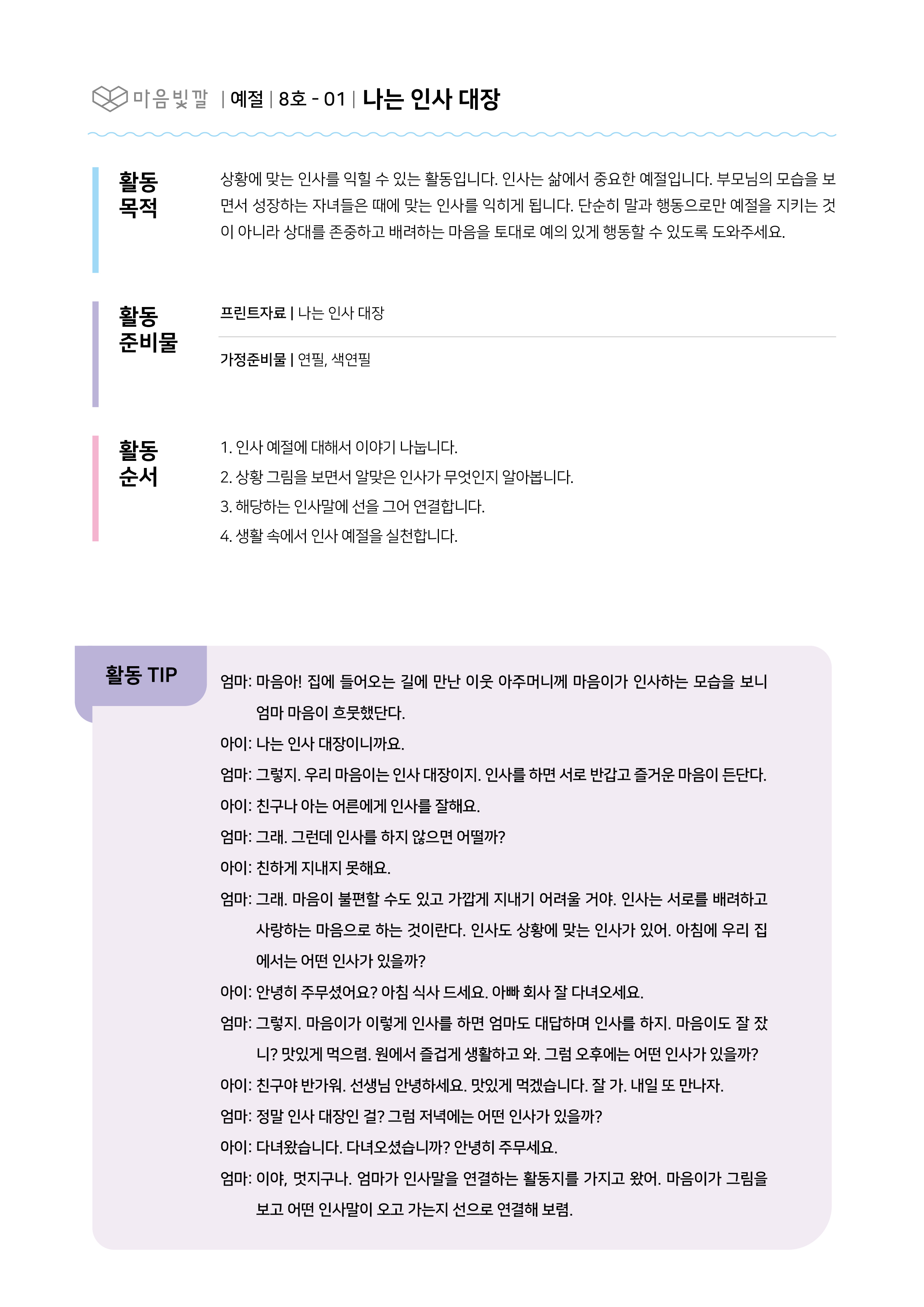 - 인사 예절에 대해 이야기 나눠요.