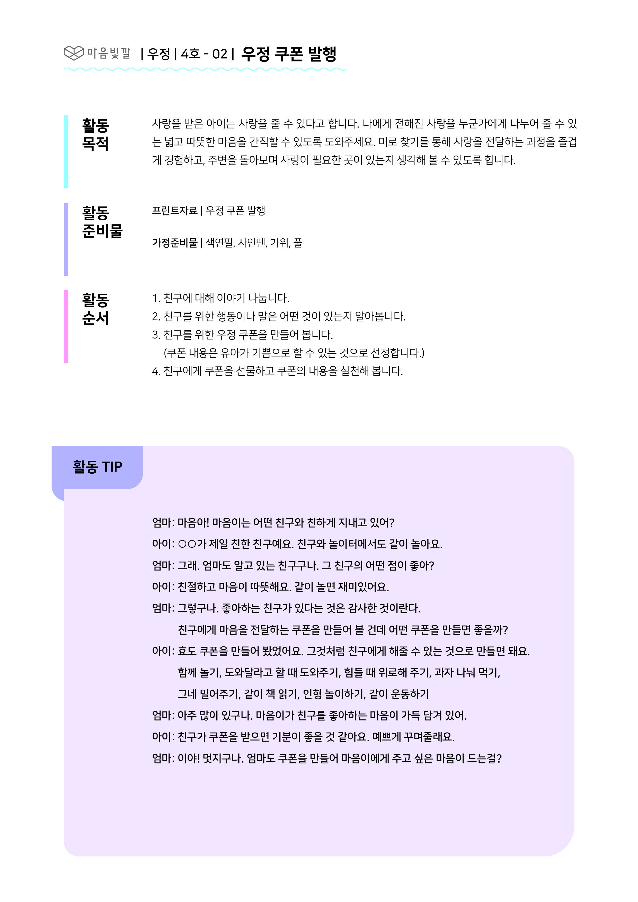 - 친구를 위한 우정 쿠폰을 만들어 선물해요.