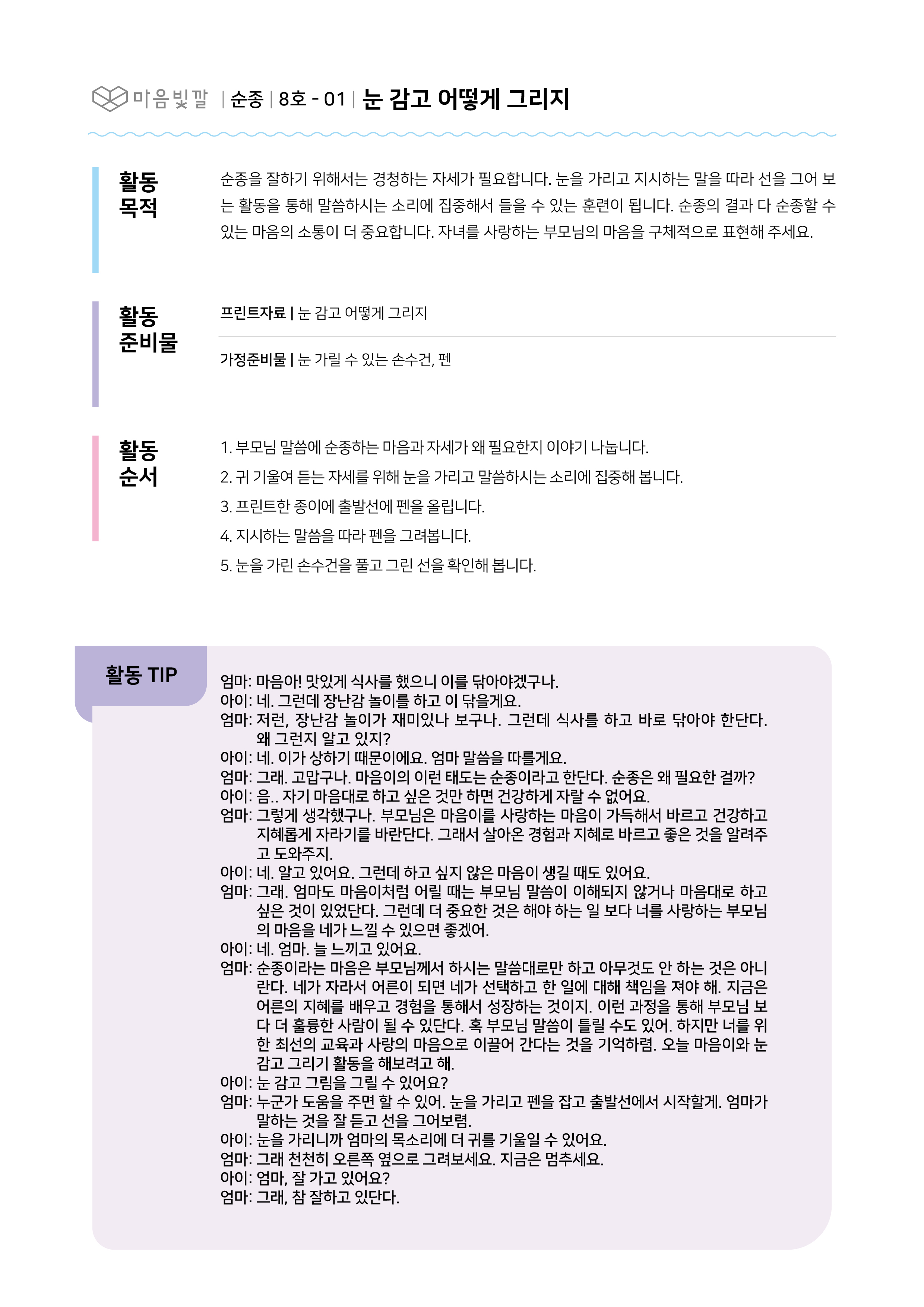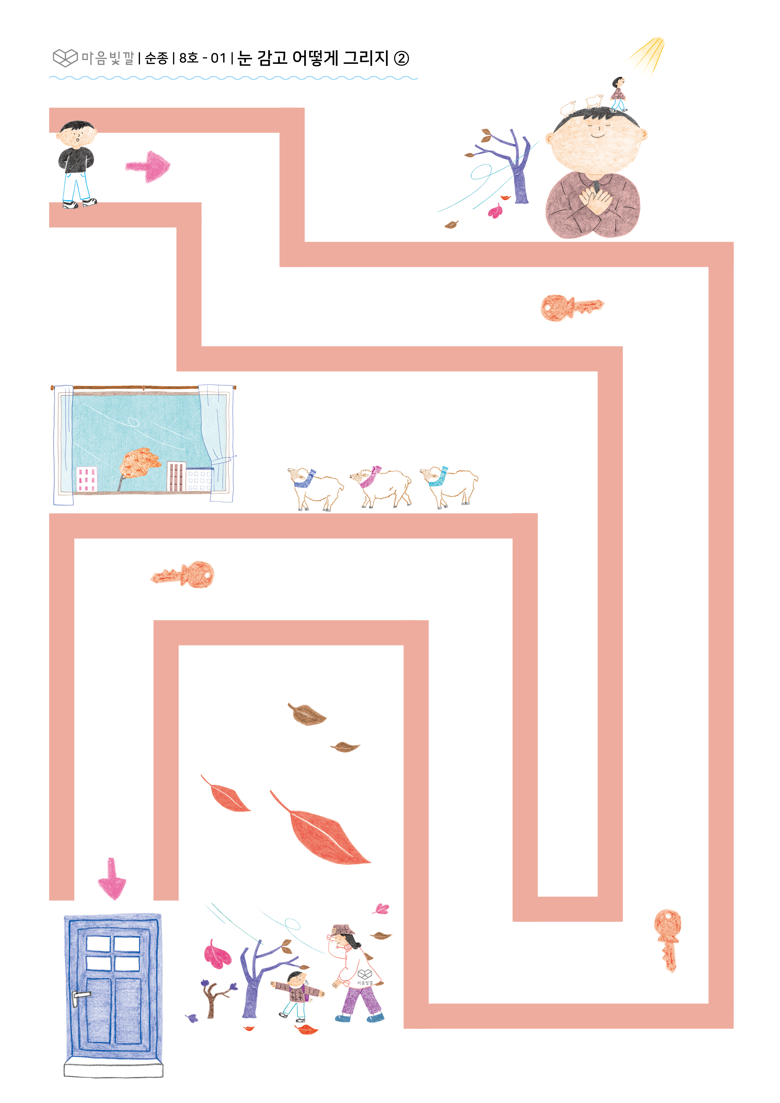 - 눈을 감고 부모님 말씀에 따라 펜으로 그리며 길을 따라 그려요.